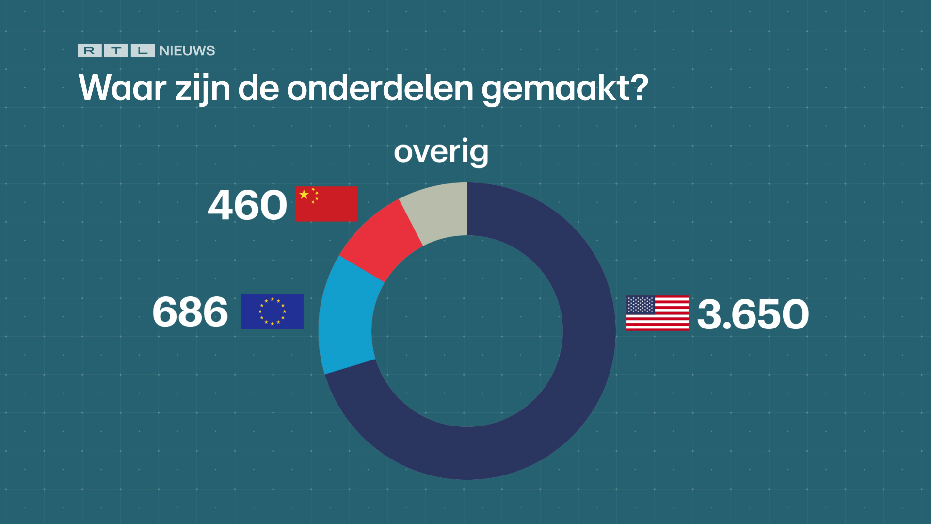 - Van de 379 Nederlandse onderdelen is 91 procent een chip, verder gaat het om andere elektronische onderdelen.