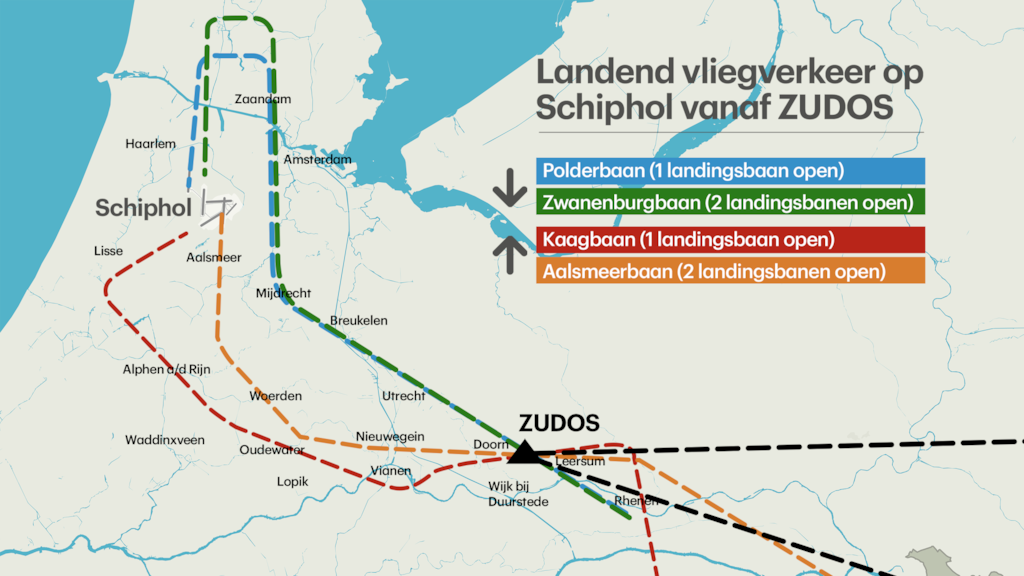 Eén van de voorgenomen maatregelen die het Nederlandse luchtruim toekomstbestendig moet maken is een vierde naderingspunt voor landend vliegverkeer uit het zuidoosten. Nu komt landend verkeer op drie plekken het luchtruim van Schiphol binnen. Het is de bedoeling dat daar een vierde punt bijkomt: ZUDOS, iets ten zuiden van Doorn in de provincie Utrecht.