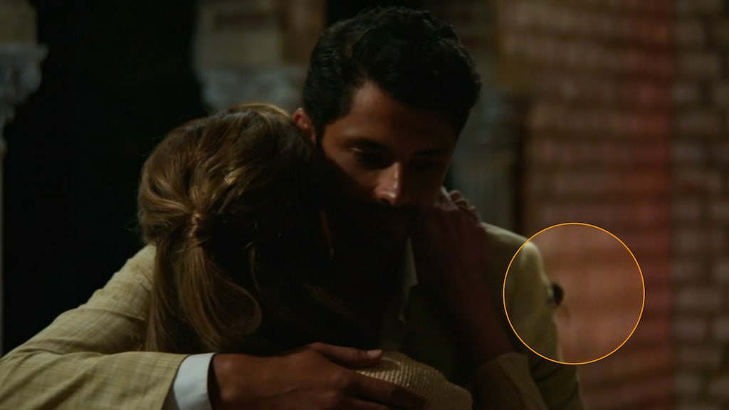 Terwijl Matthijs naar Sylvia toe loopt om haar laatste roos in ontvangst te nemen, is de kakkerlak duidelijk te zien. En dat doet ons toch wel even slikken, want het is een flink exemplaar. Gelukkig voor Sylvia ziet zij 'm ook niet.