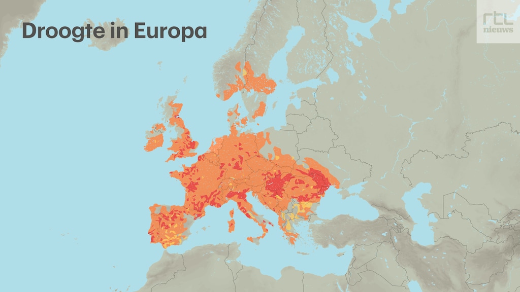 De gele gebieden moeten in de gaten worden gehouden, in de oranje gebieden gelden er waarschuwingen en in de rode gebieden is het eigenlijk al foute boel. Daar is het veel droger dan dat het hoort te zijn. 47 procent van Europa kleurt oranje, 17 procent rood.