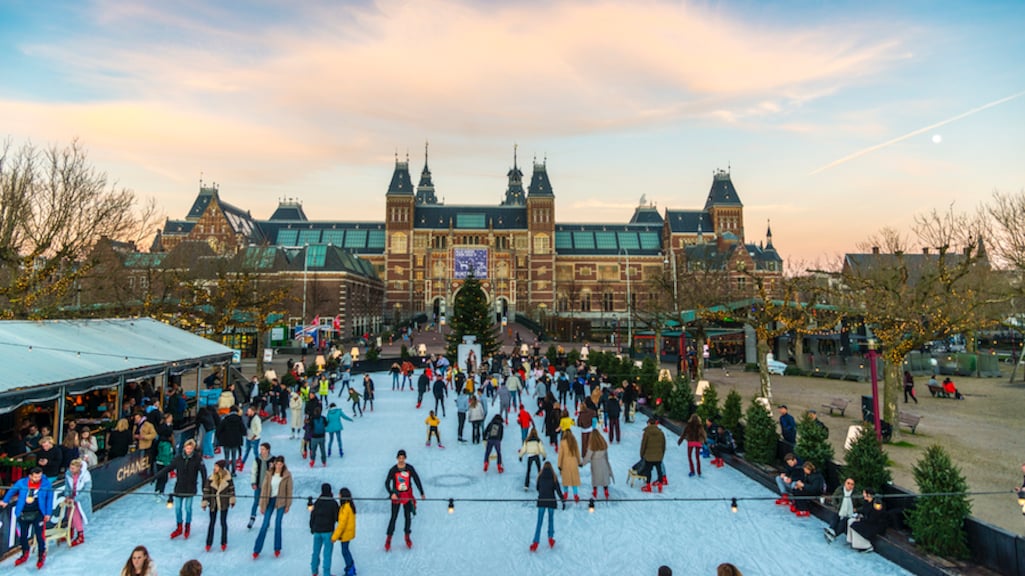 De kerstmarkt van Amsterdam kan niet ontbreken in het rijtje. De markt wordt aangekleed met een winterlandschap en een schaatsbaan met het Rijksmuseum op de achtergrond.