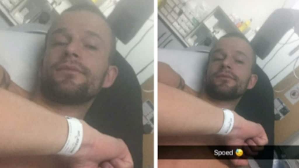 Tim deelt onder andere een selfie met "spoed" op zijn Snapchat. "Plots had ik echt pijn in mijn achterhoofd", laat Tim aan RTL Boulevard weten. "De pijn ging erna door naar mijn rug en schouder en zelfs tot in mijn ellebogen. Kreeg tintelingen in mijn arm en hand."