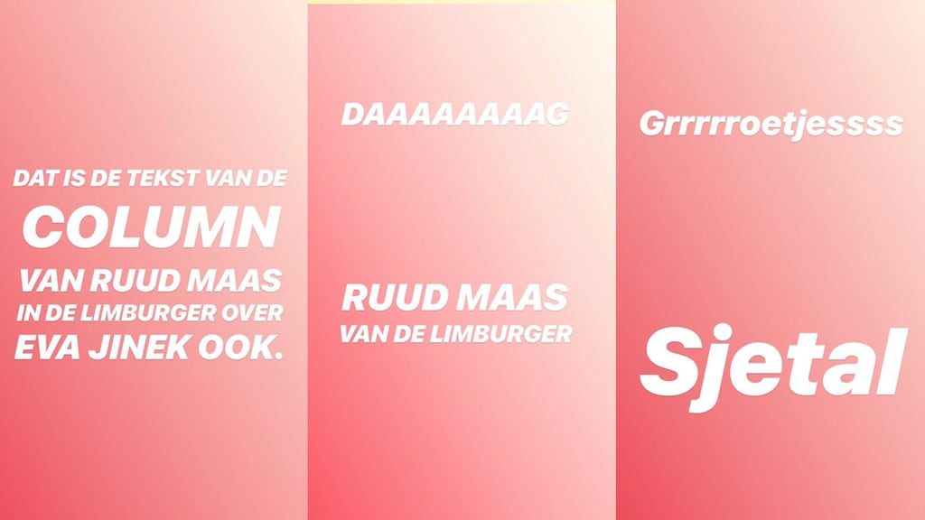 Chantal Janzen, zelf geboren in Limburg, neemt het op voor de zwangere presentatrice. In haar Instagram-story zet ze de tekst: "Tis een kwestie van geduld, rustig wachten op de dag, dat heel Holland over Ruud Maas van De Limburger lult." De blondine leidt het geheel in door te zeggen dat het een andere tekst is op het nummer Limburg van Rowwen Hèze.