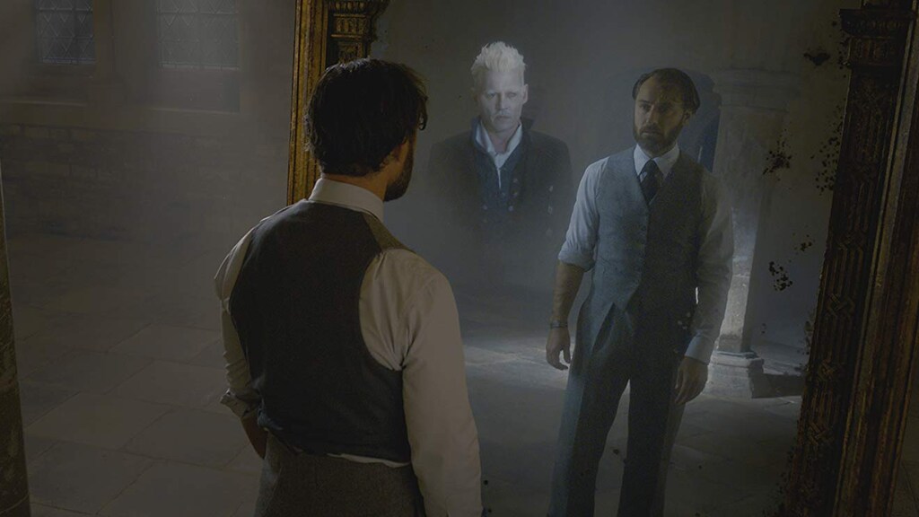 Albus Dumbledore staat in de nieuwe film oog in oog met de spiegel van Neregeb. Ook die kennen we nog van alle Harry Potter-films.
