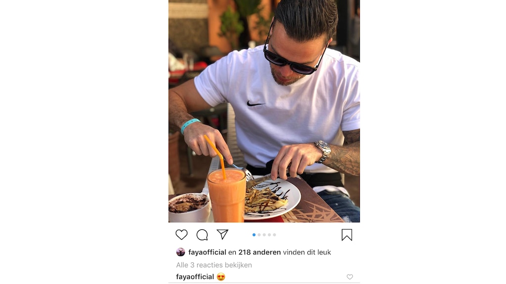 Fajah is te zien op de Instagramstory van Daan van Dijk, zoals op de linkerafbeelding is te zien. De twee zitten dicht tegen elkaar aangekropen op een bankje. Hoewel ze vrijwel onherkenbaar in beeld komt, is het toch echt Fajah. Op haar eigen Instagram plaatst ze namelijk een foto waarop ze dezelfde bikini draagt.