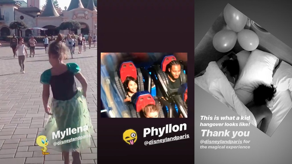 Doutzen deelt in haar Instagramstory's beelden van hun tripje. Myllena danst trots rond in haar jurk van prinses Anna uit de film Frozen. Phyllon zoekt juist het avontuur op met zijn vader. Samen met zijn vader maakt hij een ritje in de Hyperspace Mountain. De kinderen van het powerkoppel waren na het dagje pretpark wel flink uitgeteld. Doutzen plaatste nog een kiekje van haar kroost op Instagram: "Dit is hoe een kinderkater eruitziet. Dank Disneyland Parijs voor de magische dagen."