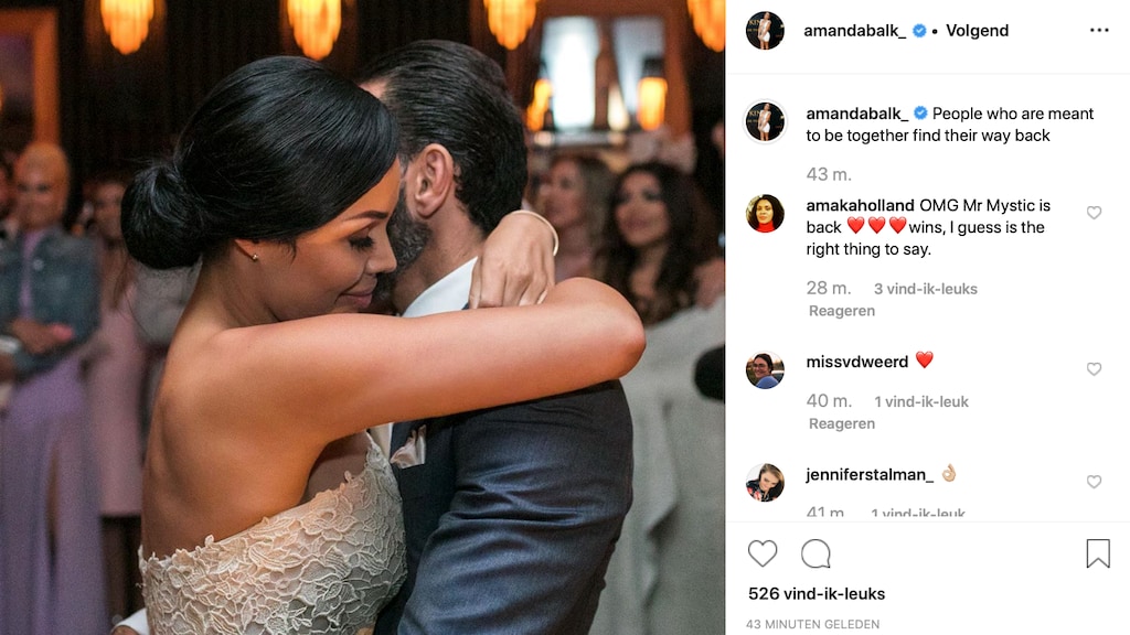 De realityster plaatst nu een foto van hun samen met de tekst: "Mensen die bij elkaar horen, vinden altijd weer hun weg terug naar elkaar." Amanda Balk liet afgelopen maandag aan RTL Boulevard weten dat het hartstikke goed met haar gaat. "Met mijn dochter nog veel beter, dat is het belangrijkste." Toen liet ze nog niets blijken van een eventuele verzoening met Stavros.