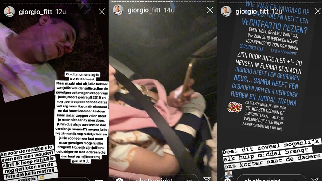 Temptation-verleider Giorgio en zijn verloofde Samra zijn slachtoffer geworden van een zware vechtpartij. Het koppel was feest aan het vieren op het Belgische festival Maze Festival, toen er ruzie uitbrak.