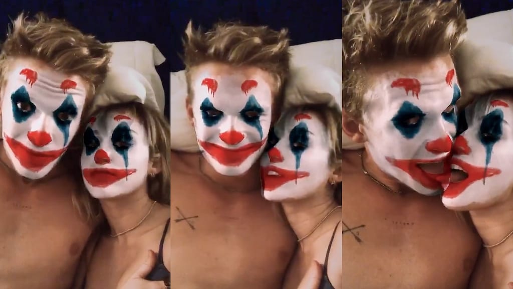 Cody Simpson deelde een video van een intiem bedmomentje op Instagram. Samen met Miley ligt hij te kroelen in bed. De twee kijken in de camera met een Joker-filter op hun gezicht en dan steekt Miley haar tong uit. Een romantische tongzoen is het niet echt te noemen, want het blijft bij een uitgestoken tong.