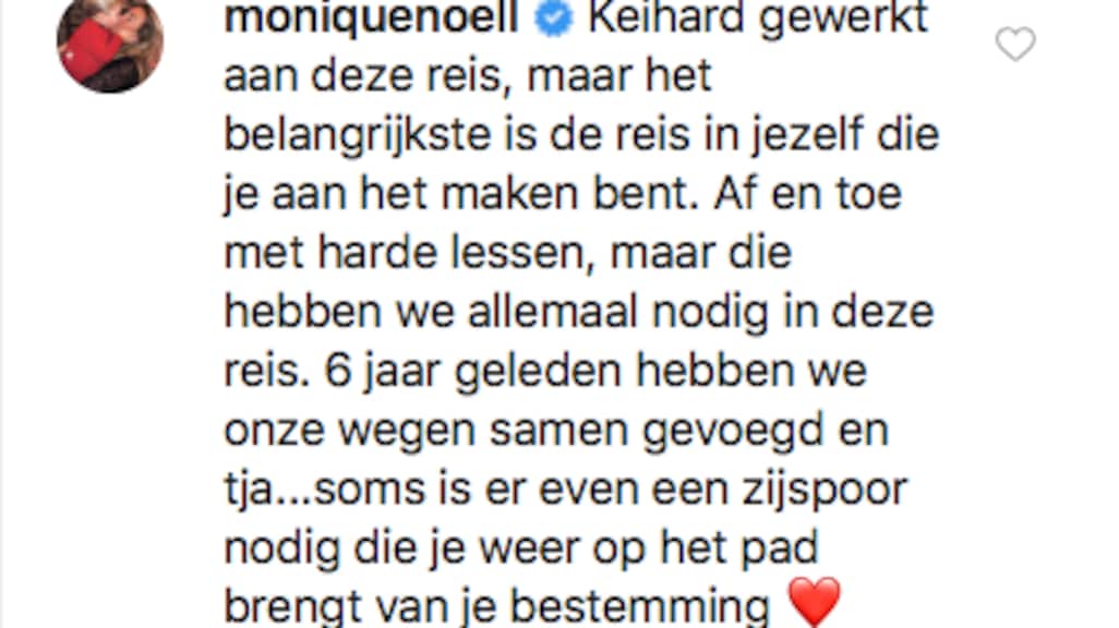Onder André's nieuwste post heeft Monique een reactie achtergelaten en dat lijkt een sneer te zijn naar Bridget. "Keihard gewerkt aan deze reis, maar het belangrijkste is de reis in jezelf die je aan het maken bent", schrijft ze. "Af en toe met harde lessen, maar die hebben we allemaal nodig in deze reis. Zes jaar geleden hebben we onze wegen samengevoegd en tja… soms is er even een zijspoor nodig die je weer op het pad brengt van je bestemming."