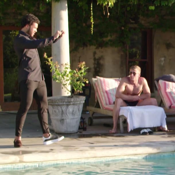 Jordy is de beroerdste niet en vertelt het verhaal erachter. "Ik liep naar de jongens toe om te vragen welke schoenen beter passen onder mijn outfit", legt hij uit. "Toen ik wegliep ging ik terug naar mijn kamer om uiteindelijk de loafers aan te trekken. Ze (de programmamakers, red.) hebben dat stukje er zo te zien uitgelaten."