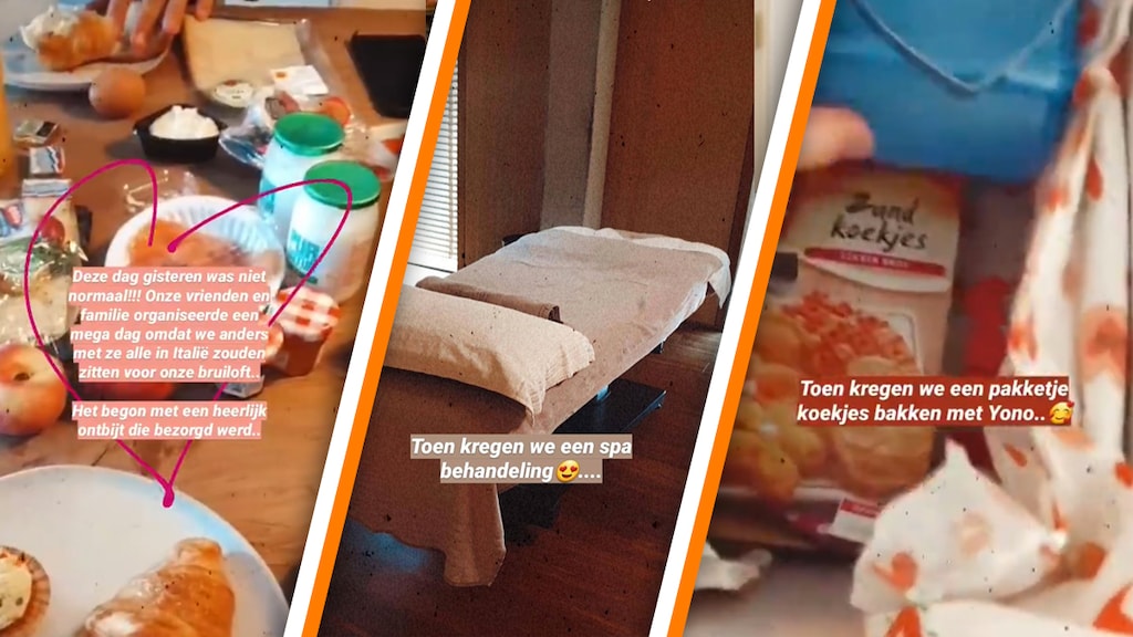 Omdat ze eigenlijk met zijn allen in Italië zouden verblijven, werden Xelly en haar verloofde Beer wakker gemaakt met een heerlijk ontbijtje. Lekker lang ontbijten zat er echter niet in, want daarna moesten de twee snel door voor een heerlijke spa-behandeling. Helemaal zen gingen ze vervolgens met zoontje Yono koekjes bakken, om vervolgens samen met alle lieve vrienden en familie te genieten van een heerlijk Italiaans diner.