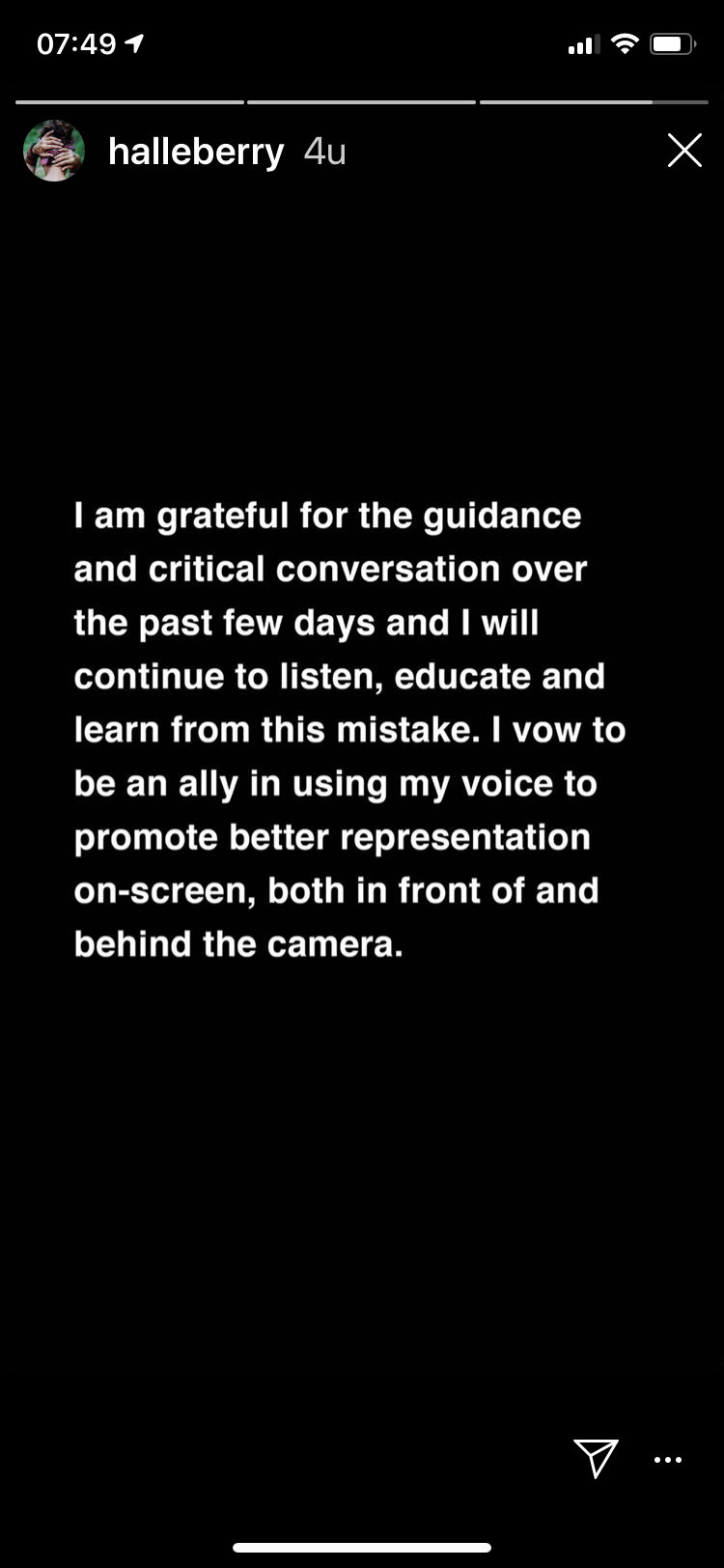 In het statement belooft de actrice 'een betere bondgenoot' te zijn voor de lhbti-gemeenschap. "Ik zal mijn invloed gebruiken om betere representatie aan te kaarten, zowel voor als achter de camera."