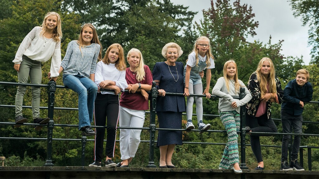 Prinses Beatrix is de trotse oma van acht kleinkinderen. Amalia, Alexia en Ariane van Willem-Alexander en Máxima, Luana en Zaria van Friso en Mabel en Eloise, Claus-Casimir en Leonore van Constantijn en Laurentien. De foto hieronder werd gemaakt bij kasteel Drakensteyn ter gelegenheid van de tachtigste verjaardag van de prinses.