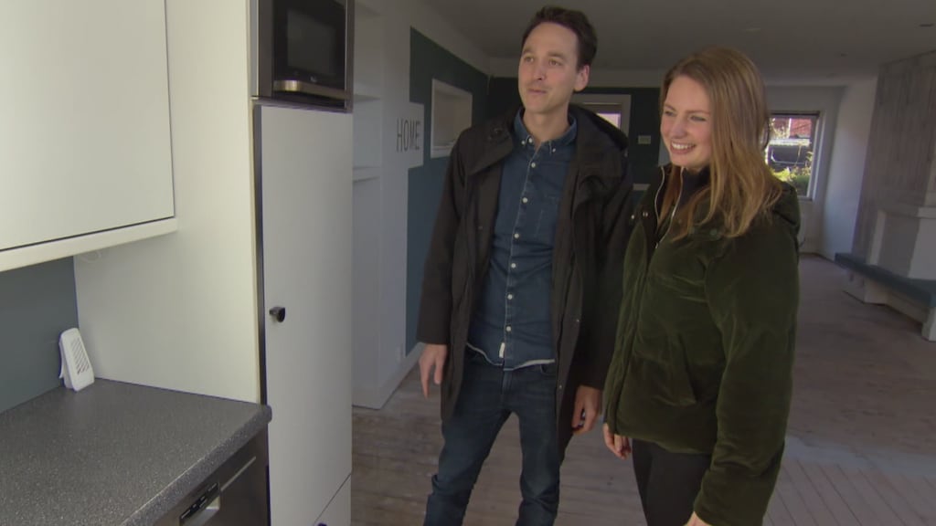 Eenmaal aangekomen bij hun nieuwe woning, is het stel blij verrast met de ruimte. Wel zetten ze vraagtekens bij hoeveel er nog moet worden geklust. "Ik ben enthousiast, maar ik weet niet meer wat ik moet zeggen", zegt Robin.
