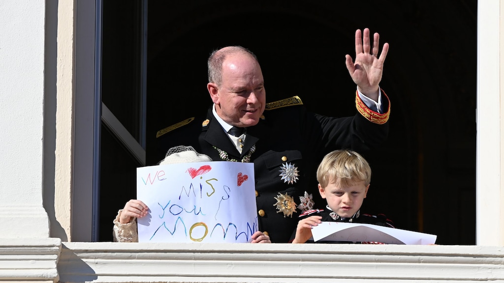 Albert is samen met de zesjarige tweeling Gabriella en Jacques wel aanwezig bij de viering van de nationale feestdag. Op foto's is te zien hoe Gabriella een tekening met boodschap voor haar moeder vasthoudt: 'We missen je, mam.'