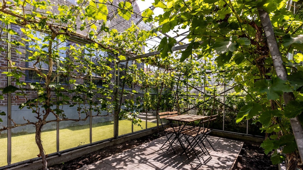 Wijn kan je hier niet meer kopen maar je kunt het wel zelf gaan maken! In de tuin vind je namelijk een druivenkas.