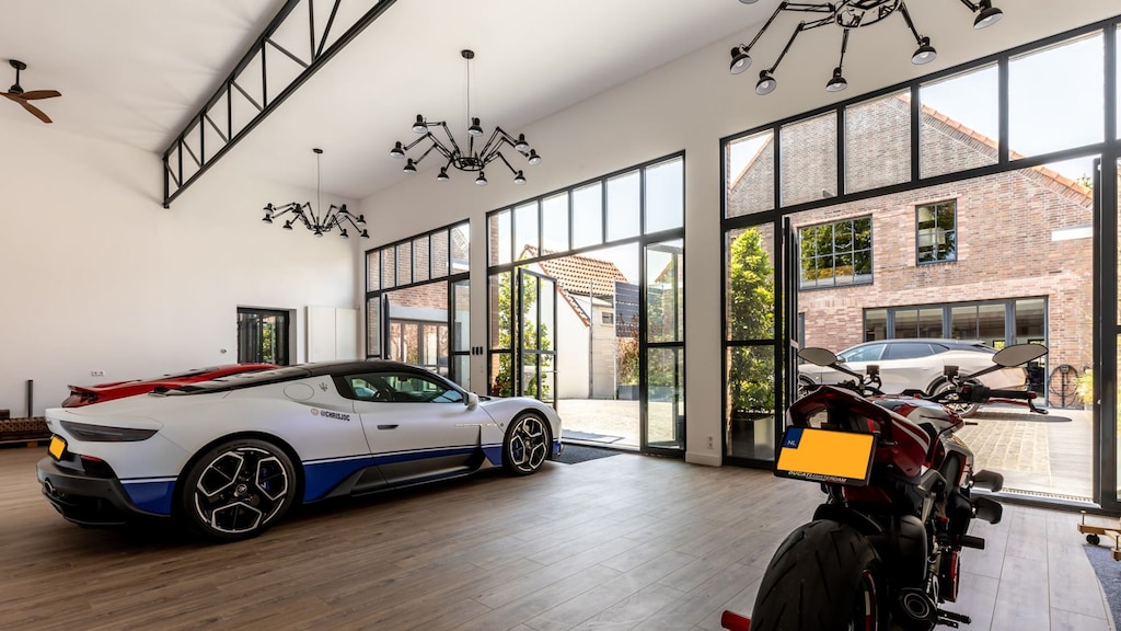 Niet alleen de binnenkant van het woonhuis is verrassend, er is nog iets aan dit huis wat je niet vaak tegenkomt: een showroom. Verschillende auto's stelen de show in dit decor. Helaas zijn deze auto’s niet inbegrepen bij de verkoop. Maar als jij zelf een collectie hebt die je in de schijnwerpers wilt zetten, dan is dit de perfecte plek!