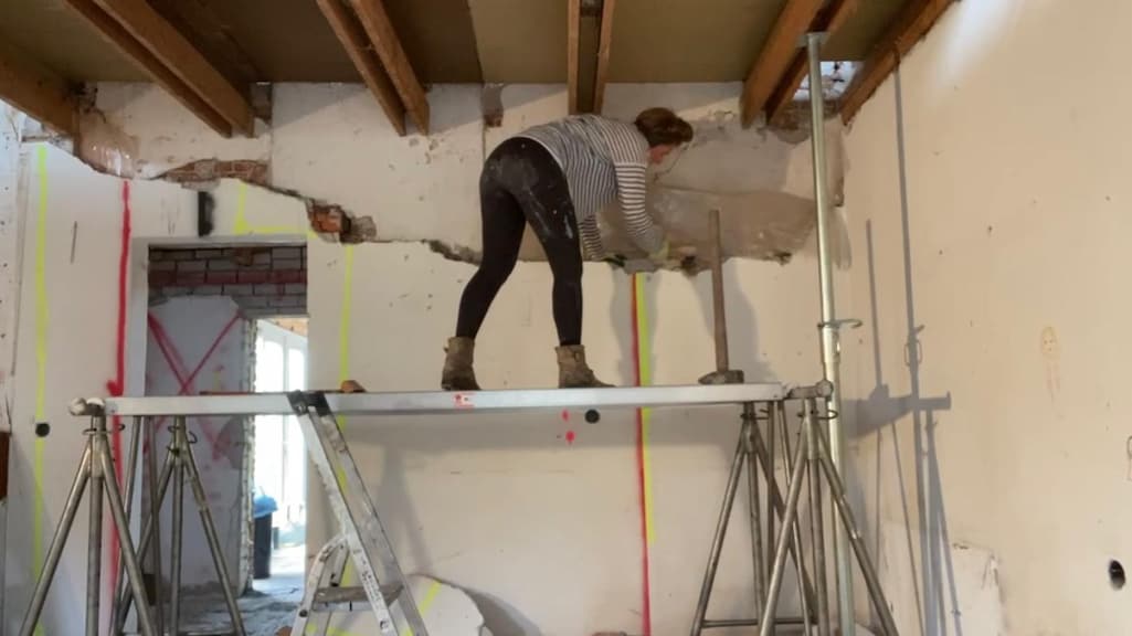 Ze stript uiteindelijk echt het hele huis, en alleen de buitenmuren blijven staan. Al moesten die er ook flink aan geloven: "De buitenkant was op een verkeerde manier geïsoleerd. Ze hadden er piepschuim tegenaan geplakt, daardoor kon je de muren overal induwen. Dat zag er misschien leuk uit, maar het was vooral heel slecht."