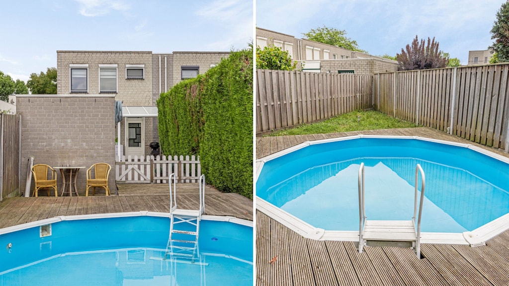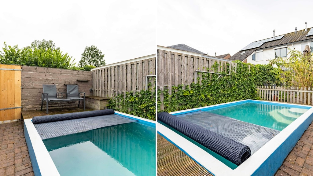 Vlakbij Den Bosch vind je deze tussenwoning met zwembad. Je zal denken dat het haast niet mogelijk is in een tuin van 18 m², maar vanwege de ophoging van het luxe buitenbad, ziet het er niet een zo gek uit. Alleen is er helaas geen plek meer voor een lekkere loungeset...