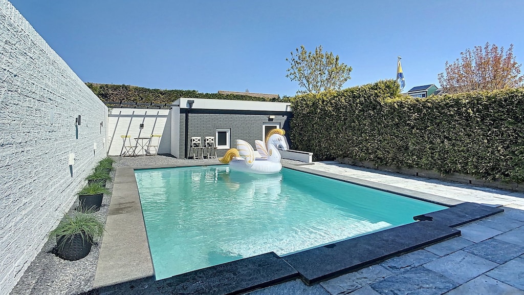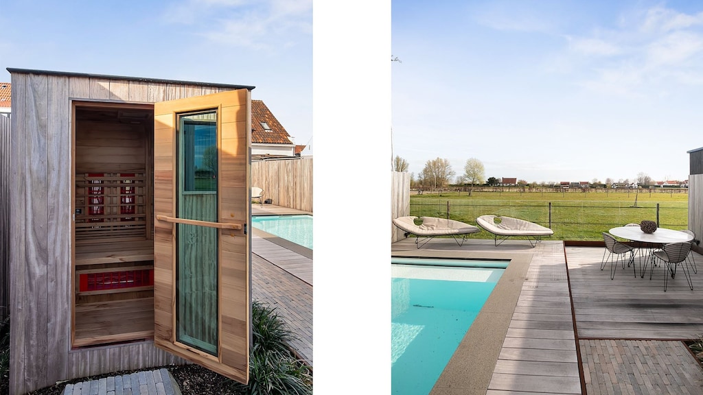 Dit huis in het prachtige Cadzand is nog een stukje kleiner: 77 m², maar wél met de uitstraling van een super deluxe villa. De woning is in 2023 volledig gerenoveerd en dat is onder andere goed te zien aan de mooie open keuken, chique badkamer én de parel van het huis: het buitenzwembad. In de tuin heb je het gevoel alsof je in een chic hotel zit. Al helemaal vanwege de uitgestrekte weide als uitzicht én niet te vergeten: de sauna in het tuinhuis.