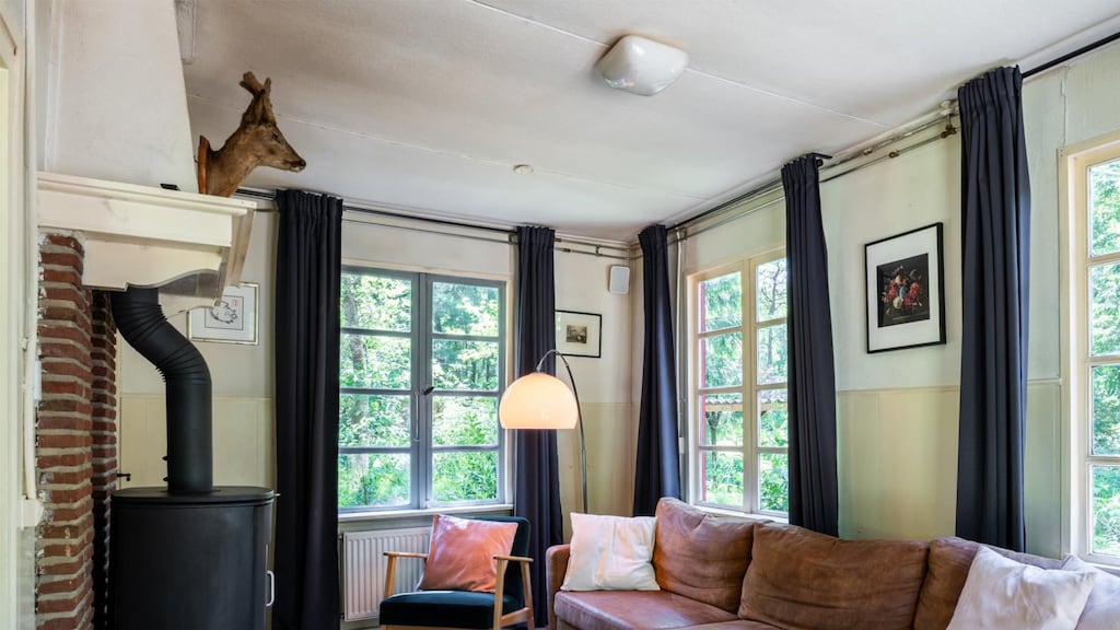 Wanneer je via de voordeur de woonkamer binnenstapt, valt meteen op dat het binnen minstens zo knus is als de buitenkant doet vermoeden. De woonkamer beschikt over dubbele tuindeuren, die binnen en buiten op een natuurlijke manier met elkaar verbinden. In alle ruimtes is centrale verwarming aanwezig, en een sfeervolle houtkachel zorgt voor extra gezelligheid.