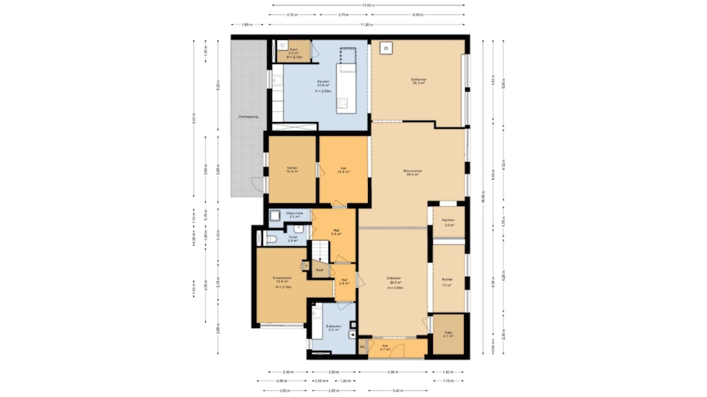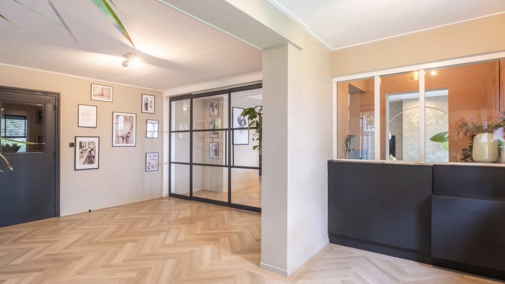 Ben je het overzicht even kwijt met al die hallen, stalen deuren en (extra) slaapkamers? Begrijpelijk! De indeling is namelijk allesbehalve standaard. Daarom even kort op een rij: op de begane grond vind je – naast het woon- en eetgedeelte – een slaapkamer, een extra kamer met kluis, een toilet, wasruimte, bijkeuken, meerdere hallen én natuurlijk de balie met kantoor. Op de tweede verdieping en de zolder vind je de andere drie slaapkamers en de badkamer.