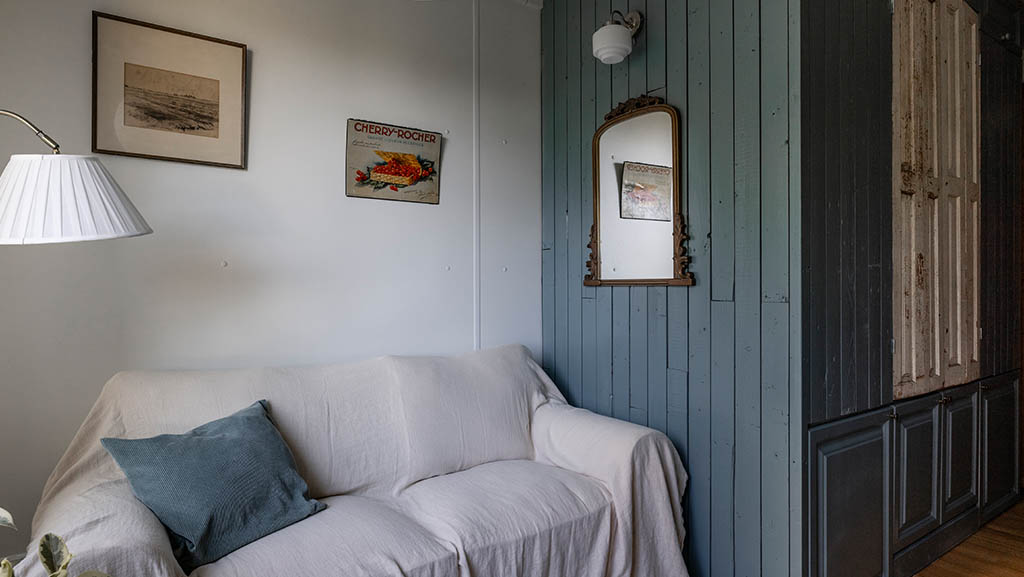 bedstee: custom made | schilderijen, vloerlamp, plaid, tafel, stoeltjes en accossoires houten kast: eigen collectie Géza