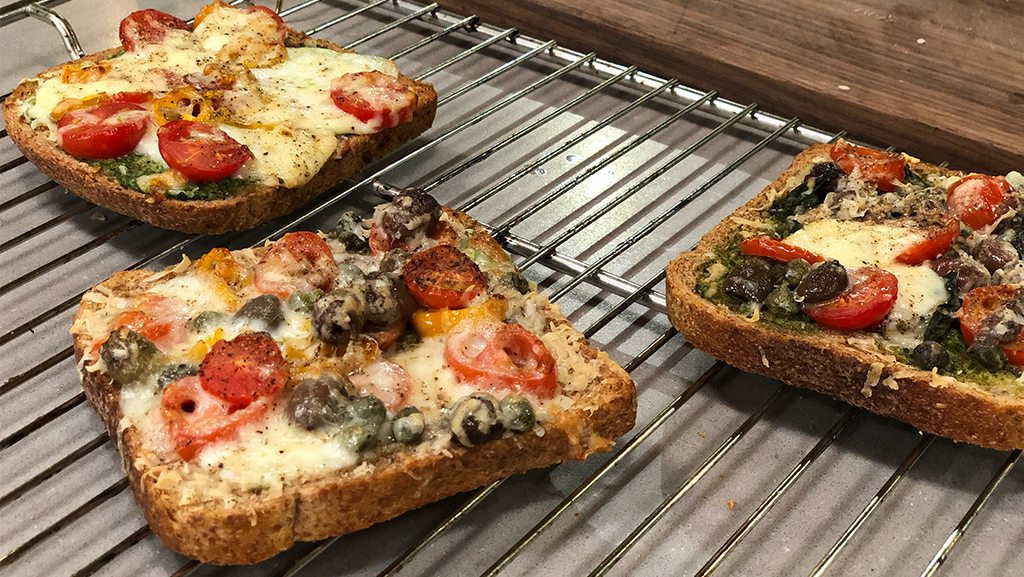 Stap 2: Besmeer de boterhammen met pesto. Leg op het rooster.