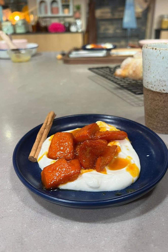 Stap 3: Haal de pompoen uit de siroop en doe over op een schaal.