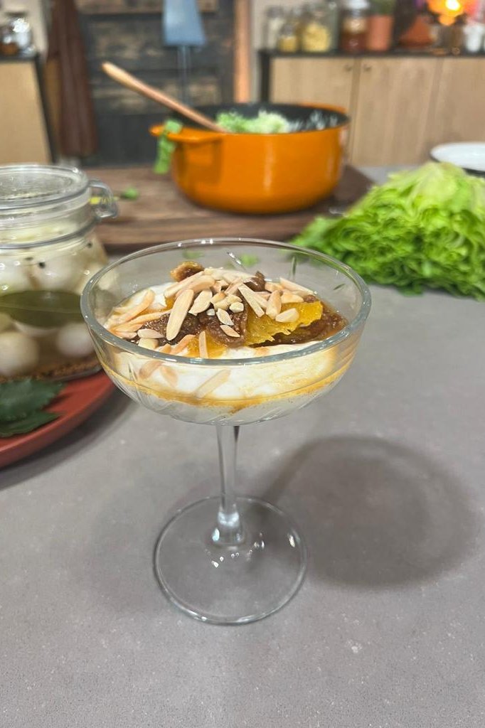 Andijviestamppot met chorizo en ingelegde uitjes én een sinaasappelkwark dessert