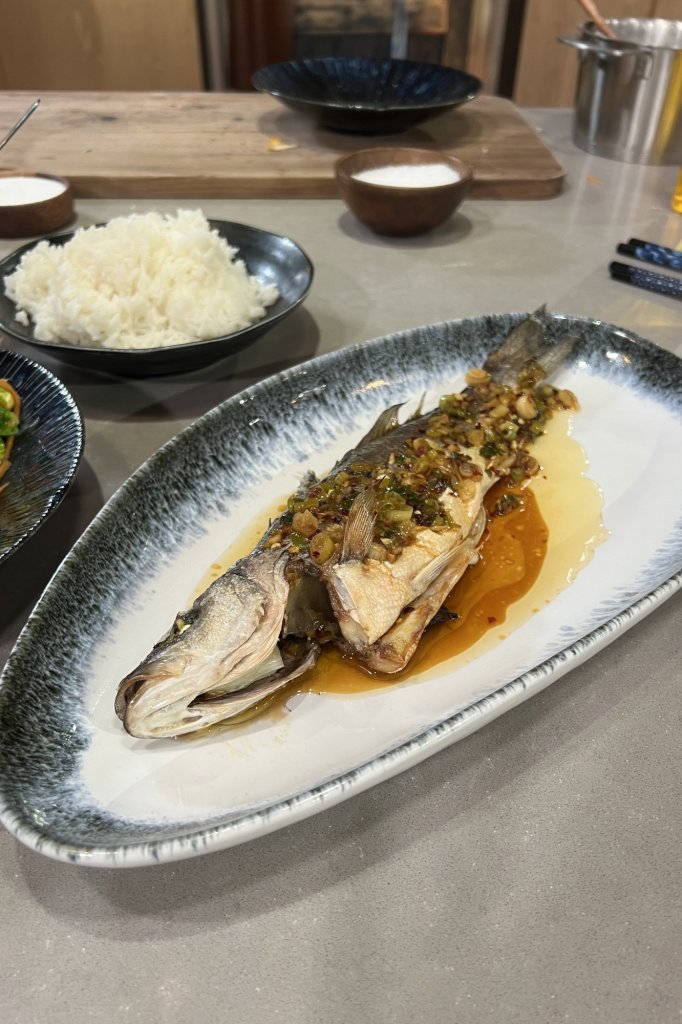 Zeebaars met gember-bosuisaus