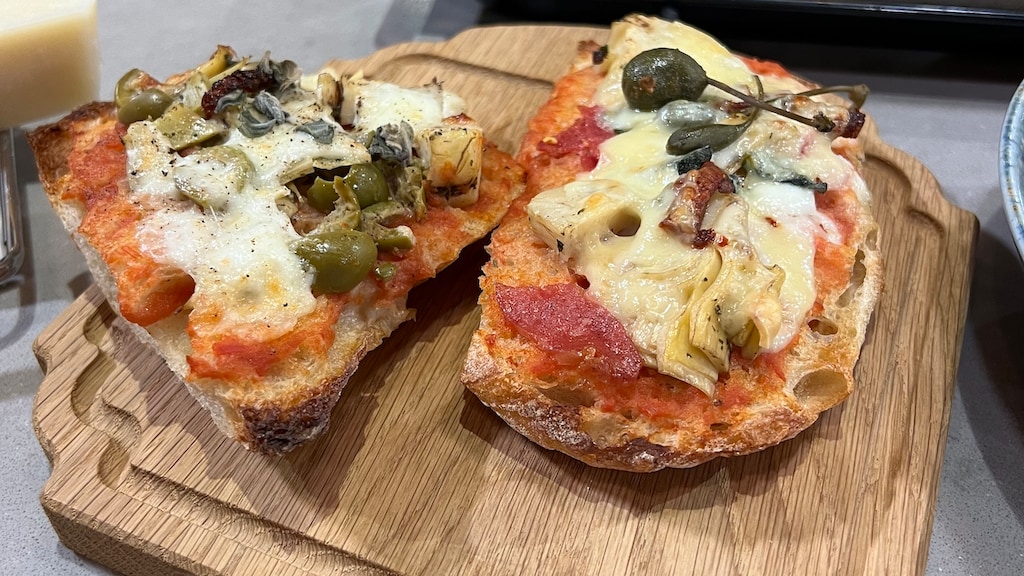 - Stap 3: Verdeel een lepel saus over het brood. Beleg met toppings naar keuze en bak circa 7 minuten in de oven.