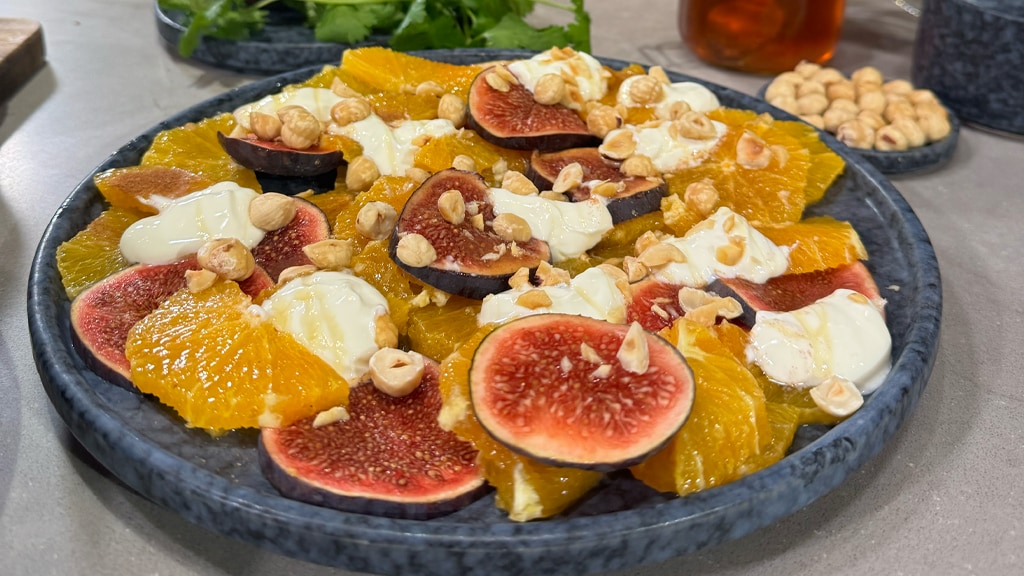 Stap 4: Rangschik de vijgen en sinaasappels op een schaal.