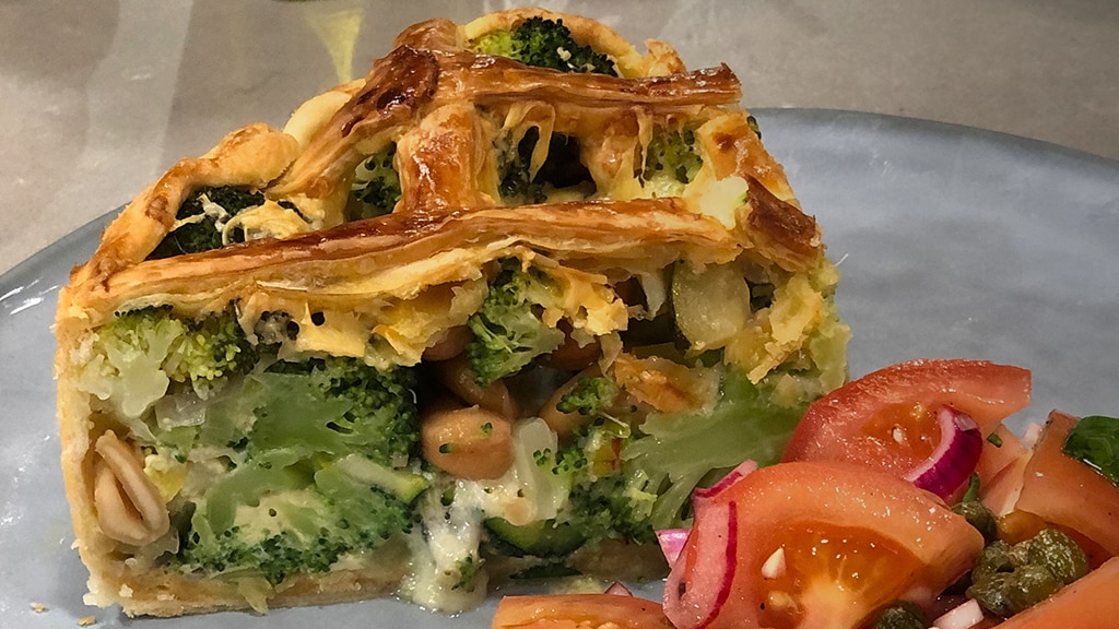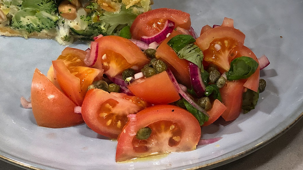 Luchtige groentequiche met kaas én een frisse tomatensalade