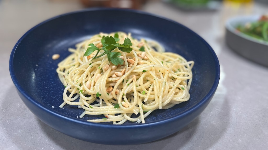 Een simpel en goedkoop pastagerecht, maar zeker niet minder lekker. Twee woorden die als muziek in de oren klinken na een productieve dag. Het is een Italiaanse pasta die licht pittig bereid wordt met knoflook. Met als toevoeging een sperziebonensalade met een tomatendressing.