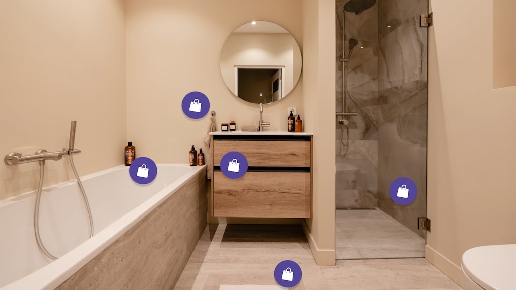 Badkamermeubels | handdoeken | zeepflessen | geurstokjes en -kaarsen | badmat | wandlampjes