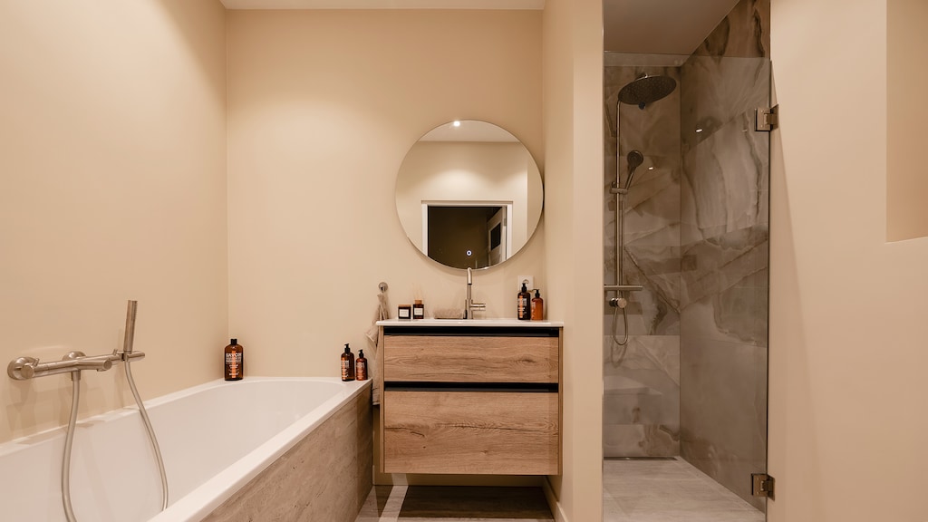Als de verbouwing is begonnen worden de muren van de badkamer gesloopt, om er vervolgens twee badkamers van te maken. Eentje voor de ouders zelf, een kleinere die bereikbaar is vanuit de slaapkamer, en een ruimere badkamer voor de meiden. Mét ligbad en douche. Heerlijk!