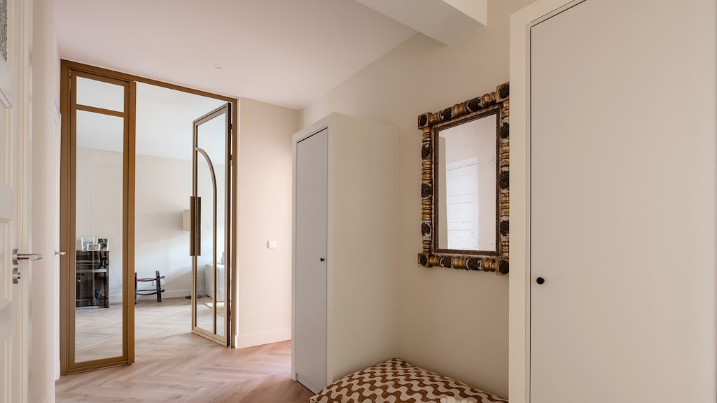 De meiden hebben alle drie een eigen slaapkamer, eindelijk! De kamer van de oudste is gemaakt in de ruimte waar eerst de keuken zat. Een bureau, groot bed én natuurlijk een mooie passpiegel. Een roze kamer, waarvan de ouders zeker weten dat ze er superblij mee is.