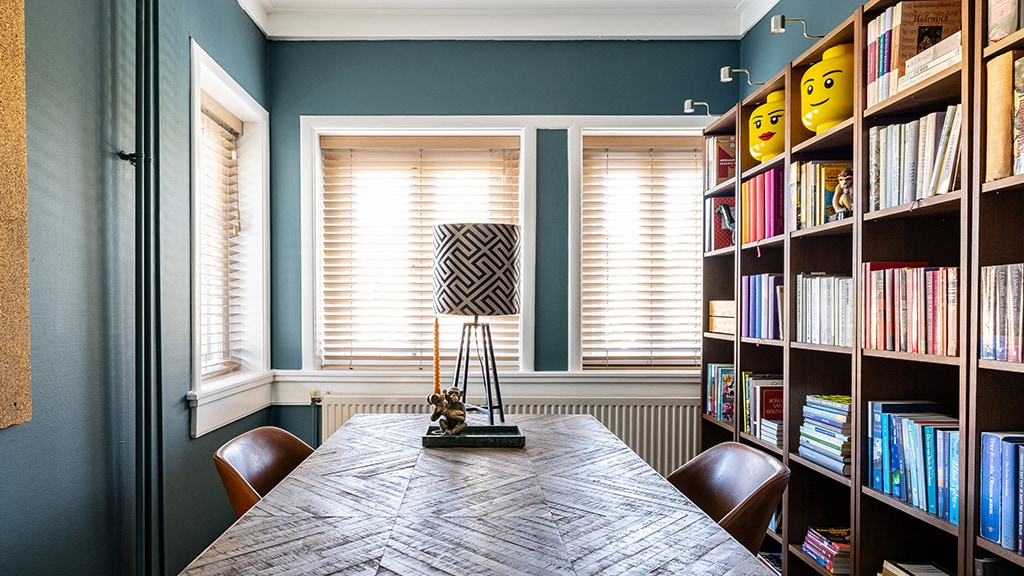 De grootste wens van Michiel was dat hij een grote boekenkast zou krijgen waar hij eindelijk zijn boeken mooi in kwijt kan. En dat is geluk! Roos heeft deze geplaatst in de werkkamer, waardoor het een hele sfeervolle kamer is geworden. Hier kunnen ze samen fijn thuiswerken terwijl ze omringd worden door hun grote passie: literatuur!
