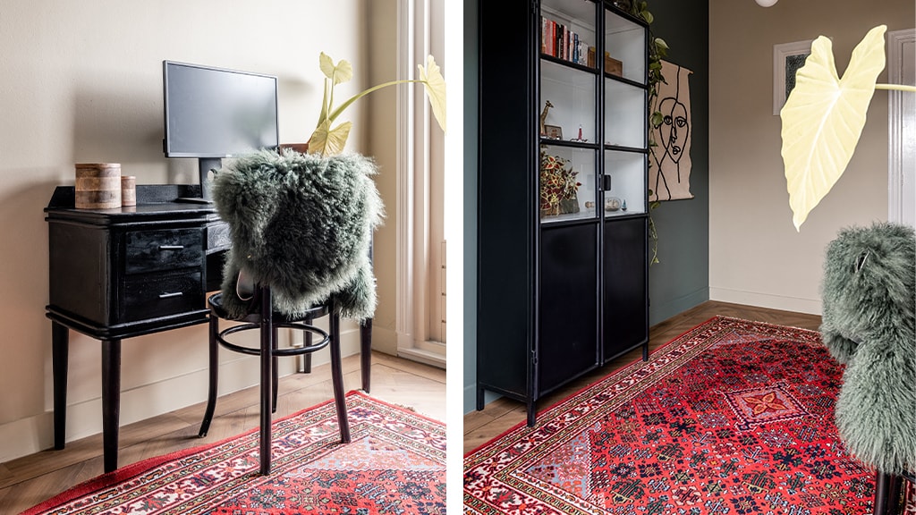 Ruben en Sanne wilden dolgraag een tweede kamer om te gebruiken als werkkamer. Een must omdat zij beiden veel tegelijkertijd thuiswerken. Er is gekozen om de werkkamer wederom in een klassieke kleur te schilderen met een fijn bureau en een kast om alles te kunnen opbergen. De werkkamer is functioneel en sfeervol en past goed bij de rest van de woning.