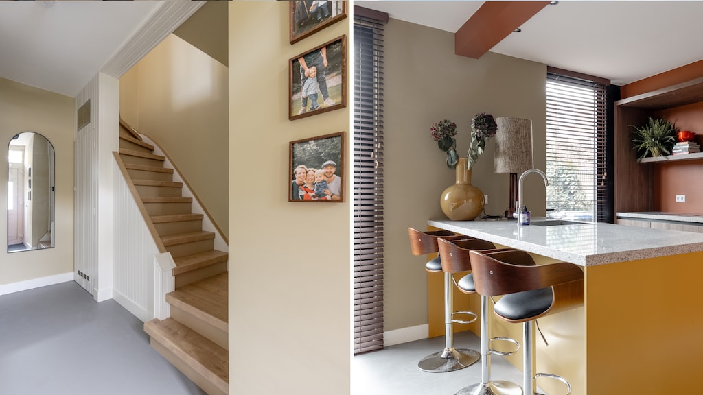 Zowel bij Sanna als Melle en Berend mag er veel kleur gebruikt worden. En hier weet Roos wel raad mee! Melle en Berend hoefden niet lang te stoeien over hun moodboard, ze hebben namelijk dezelfde stijl. Melle beschrijft hun stijl als: "Het heeft iets weg van de sixties ofwel California Retro. Maar je ziet ook elementen van Scandinavisch design terugkomen." De kleuren groen, blauw en bruin zien we veel voorbijkomen. Sanna vindt de stijlbeweging Art Deco heel gaaf. De combinatie van modern en vintage zou ze graag terug willen zien in haar interieur inclusief de warme kleuren, bordeaux rood, roze en donkerbeige.