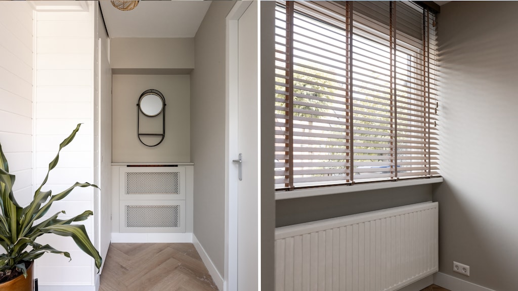 Aan de grote ovalen, organische eettafel mét zitbank kunnen ze heerlijk tafelen met vrienden en familie. En daar kan kerstliefhebber Matthijs losgaan met het kerstdiner. Het behang op de muur heeft een optisch 3D-effect en is een echte eye-catcher in het huis: het eerste wat ze doen bij binnenkomst is ook even voelen aan de muur of het écht diepte heeft. Niet dus!