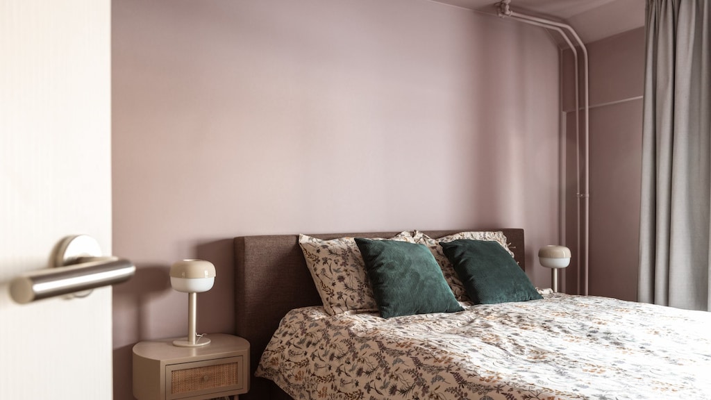 Deurknoppen | Kledingkast | Bed van bewoner zelf | Nachtkastjes | Nachtlampen | Plafondlamp | Beddengoed