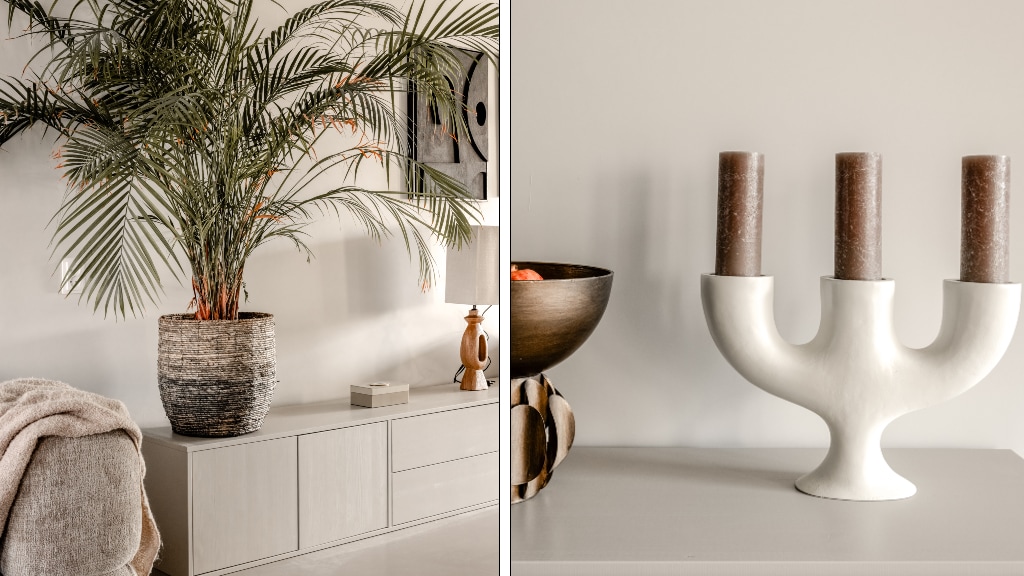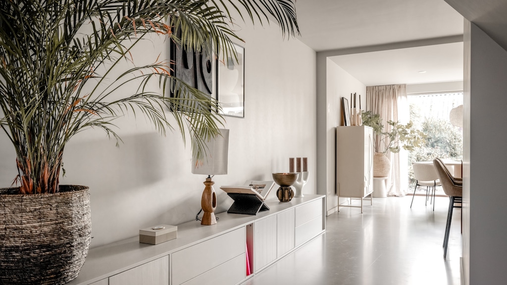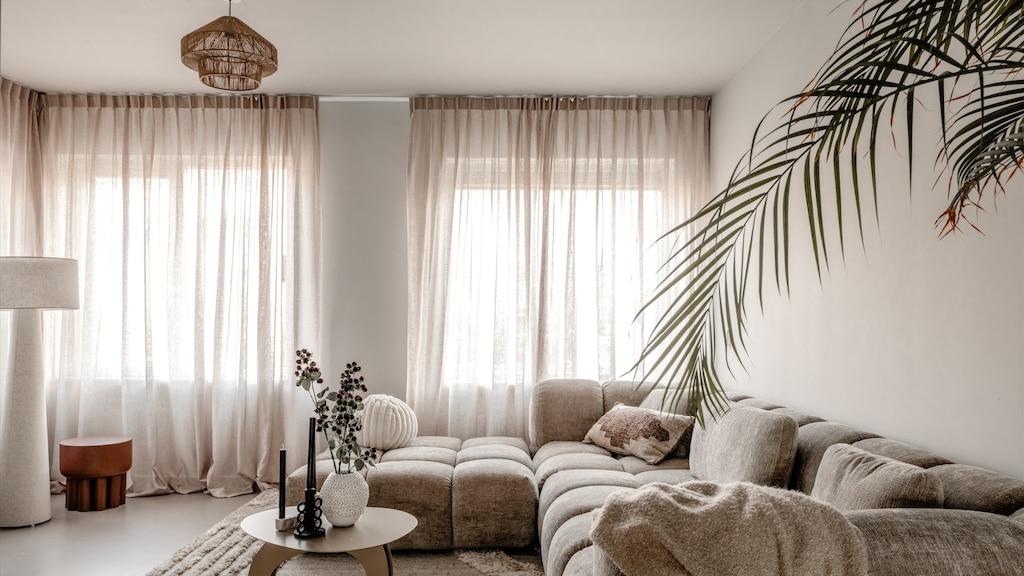 Gelukkig zitten Marlou en Ferdos helemaal op één lijn wat hun interieursmaak betreft, al vindt styliste Roos Reedijk dit een vrij uitdagende stijl om haar vaak toch wel kleurrijke stempel op te drukken. Het koppel houdt van de Japandi- en Wabi Sabi-stijl. Qua kleurgebruik komt dit met name neer op ‘beige, en beige en heel veel beige’, aldus Roos. Geen uitgesproken kleuren dit keer, maar Roos kennende kan ze ook dit thema tot in de puntjes perfect uitvoeren.