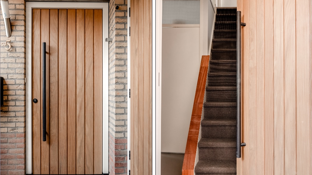 De eerste aanblik van je huis is ontzettend belangrijk, daarom koos Bob ervoor om de gedateerde en tikkie onveilige tuimeldeur van de garage én de voordeur te vervangen. Een frisse en inbraakveiligere entree die qua stijl perfect bij de rest van het interieur past.