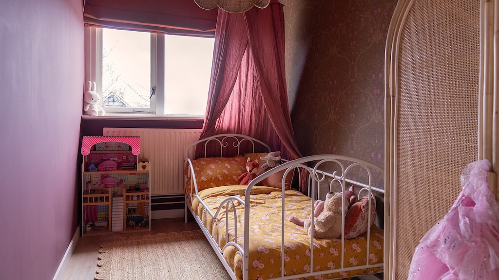 De masterbedroom is veel ruimer dan ze hadden gedacht en echt prachtig geworden. De gordijnen van lekker dik velours materiaal geven het geheel een chique uitstraling. Zodra ze het kamertje van Vajèn inlopen, schieten ze vol: het is precies zoals ze hoopten dat het zou zijn. De derde slaapkamer boven is ingericht als logeerkamer, toch fijn als er vrienden overkomen vanuit het verre Amsterdam.